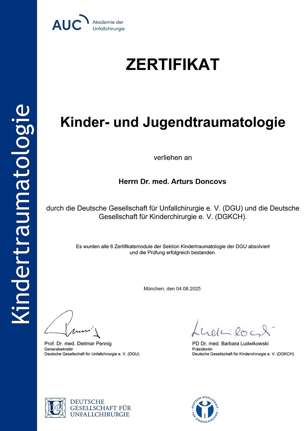 Vairākus gadus viņš strādāja universitātes klīnikās Vācijā, veicot dažādas sarežģītības operācijas pieaugušo un bērnu traumatoloģijā, ortopēdijā un mugurkaula ķirurģijā, tostarp politraumas un rekonstruktīvās procedūras. Dr. Doncovs tagad ir atgriezies Latvijā un Ziemeļkurzemes reģionālajā slimnīcā sniedz konsultācijas pacientiem ar pilnu mugurkaula slimību klāstu.